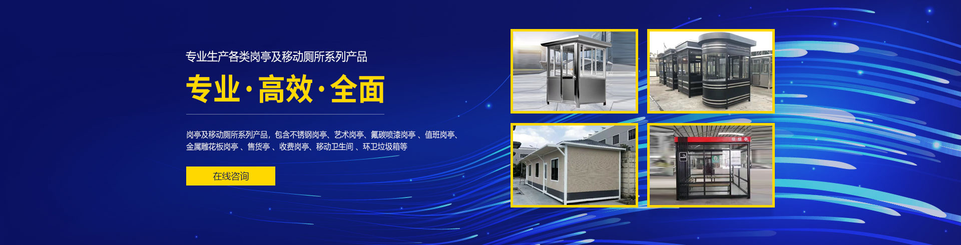 重慶市科路通金屬加工有限公司是一家專業(yè)生產(chǎn)各類崗亭及移動廁所系列產(chǎn)品,包含不銹鋼崗亭、藝術崗亭、氟碳噴漆崗亭 、值班崗亭、金屬雕花板崗亭 、售貨亭 、收費崗亭、移動衛(wèi)生間 、環(huán)衛(wèi)垃圾箱等不銹鋼金屬制品的設計、生產(chǎn)、銷售、服務為一體的專業(yè)化公司...